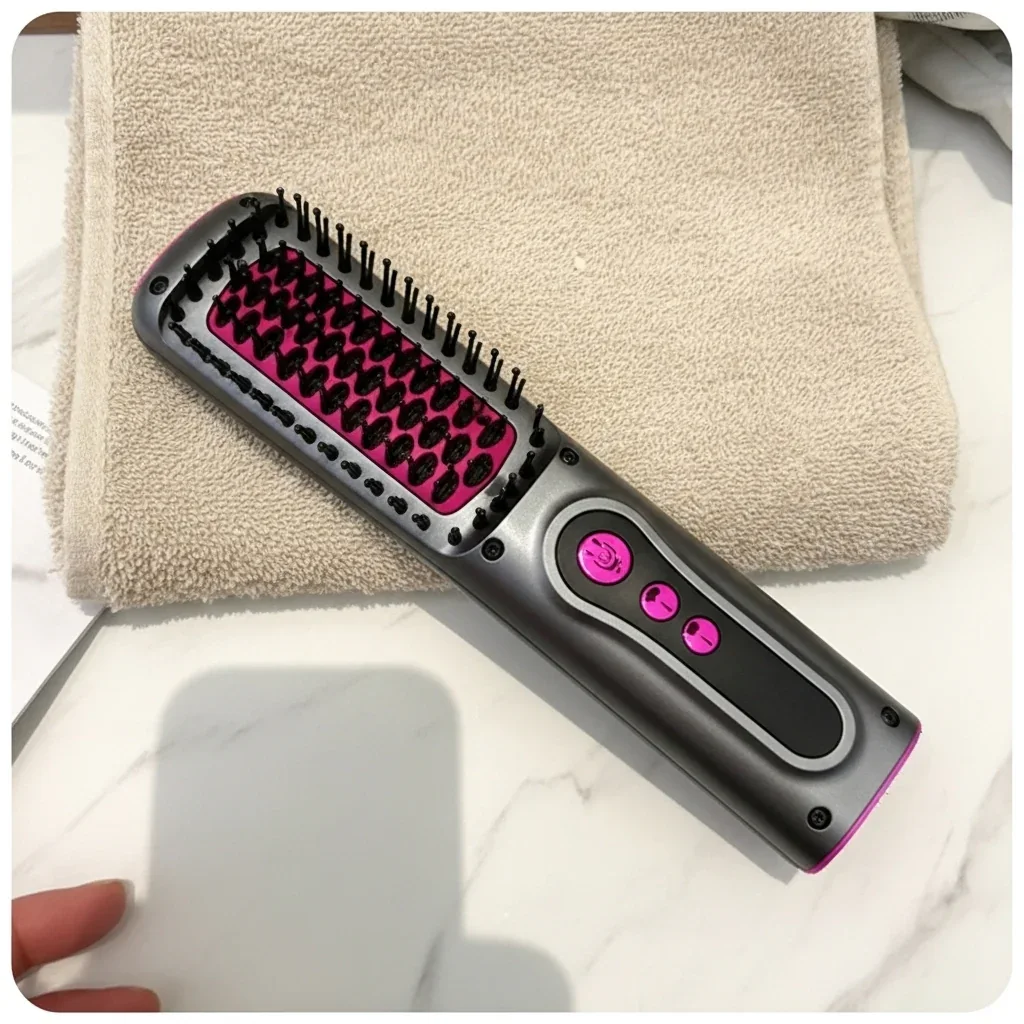 "كنت أتعب كل صباح بين السشوار والمكواة ويطلع شعري نافش ويتكسّر. مع المشط اللاسلكي صرت أخلّص في 5 دقايق."